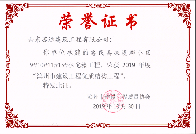 山東蘇通建筑工程有限公司,創(chuàng)建于2009年8月。目前擁有房屋建筑工程施工總承包壹級(jí)、市政公用工程施工總承包叁級(jí)、水利水電工程施工總承包叁級(jí)資質(zhì),同時(shí)還具有建筑裝修裝飾工程專業(yè)承包貳級(jí)、消防設(shè)施工程專業(yè)承包貳級(jí)、鋼結(jié)構(gòu)工程專業(yè)承包叁級(jí)、建筑機(jī)電安裝工程專業(yè)承包叁級(jí)等專業(yè)承包資質(zhì)。 公司總部坐落于山東省濱州市濱城區(qū)黃河十二路877號(hào),現(xiàn)有辦公面積約2000平方米,機(jī)構(gòu)設(shè)黨支部工會(huì)辦公室、總經(jīng)理辦公室、綜合辦公室、工程管理部、經(jīng)營(yíng)預(yù)算部、資產(chǎn)財(cái)務(wù)部、材料設(shè)備部、運(yùn)行管理部、法律事務(wù)部等多個(gè)職能部門。公司管理體系已經(jīng)通過了GB/T 19001及GB/T 50430質(zhì)量管理體系、GB/T 24001環(huán)境管理體系(EMS)、GB/T 28001職業(yè)健康安全管理體系(OHSMS)等體系的認(rèn)證。 公司承建完工了濱州市建大教師之家、建大清怡苑、香格里拉水岸綠城住宅小區(qū)、雙泰建大城、曲阜崇德公館住宅小區(qū)、北海新區(qū)御景藍(lán)灣住宅小區(qū)、沾化德榮國(guó)際華城住宅小區(qū)、惠民橄欖郡住宅小區(qū)等工程項(xiàng)目,目前在建工程項(xiàng)目有:濱州市頤高國(guó)際電子商務(wù)產(chǎn)業(yè)園住宅小區(qū)項(xiàng)目、濱州市東盛國(guó)際項(xiàng)目、高新區(qū)建大中央華府住宅小區(qū)項(xiàng)目、濱州市融匯新里程住宅小區(qū)項(xiàng)目、濱州市建大秦皇壹號(hào)住宅小區(qū)項(xiàng)目、濱州市森林花...